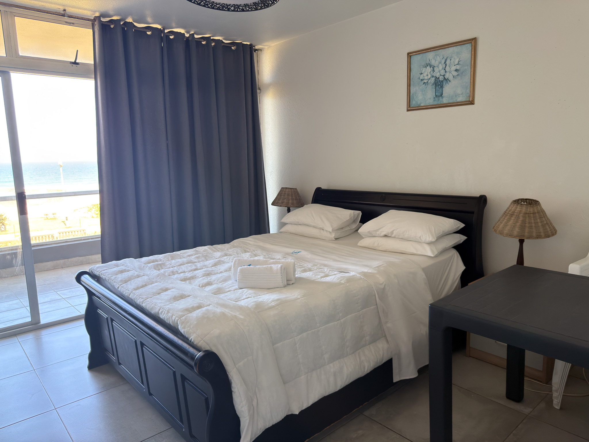 Individually owned and uniquely decorated 2-bedroom sea-facing apartment on the ground floor at Inyoni Rocks Cabanas. Sleeps up to 6 guests. Features a fully equipped kitchen, DSTV & WiFi, private balcony, and en-suite main bedroom. All linen included.