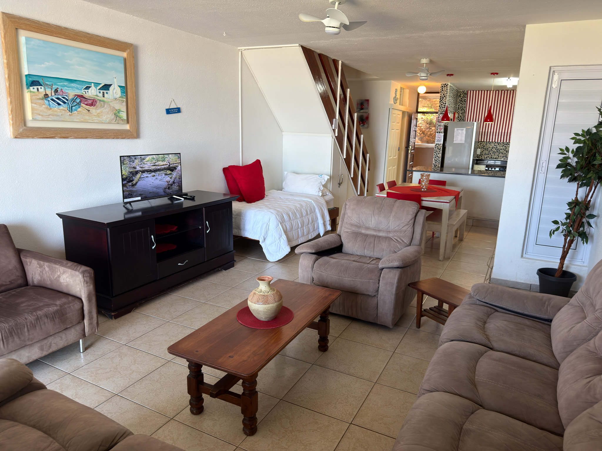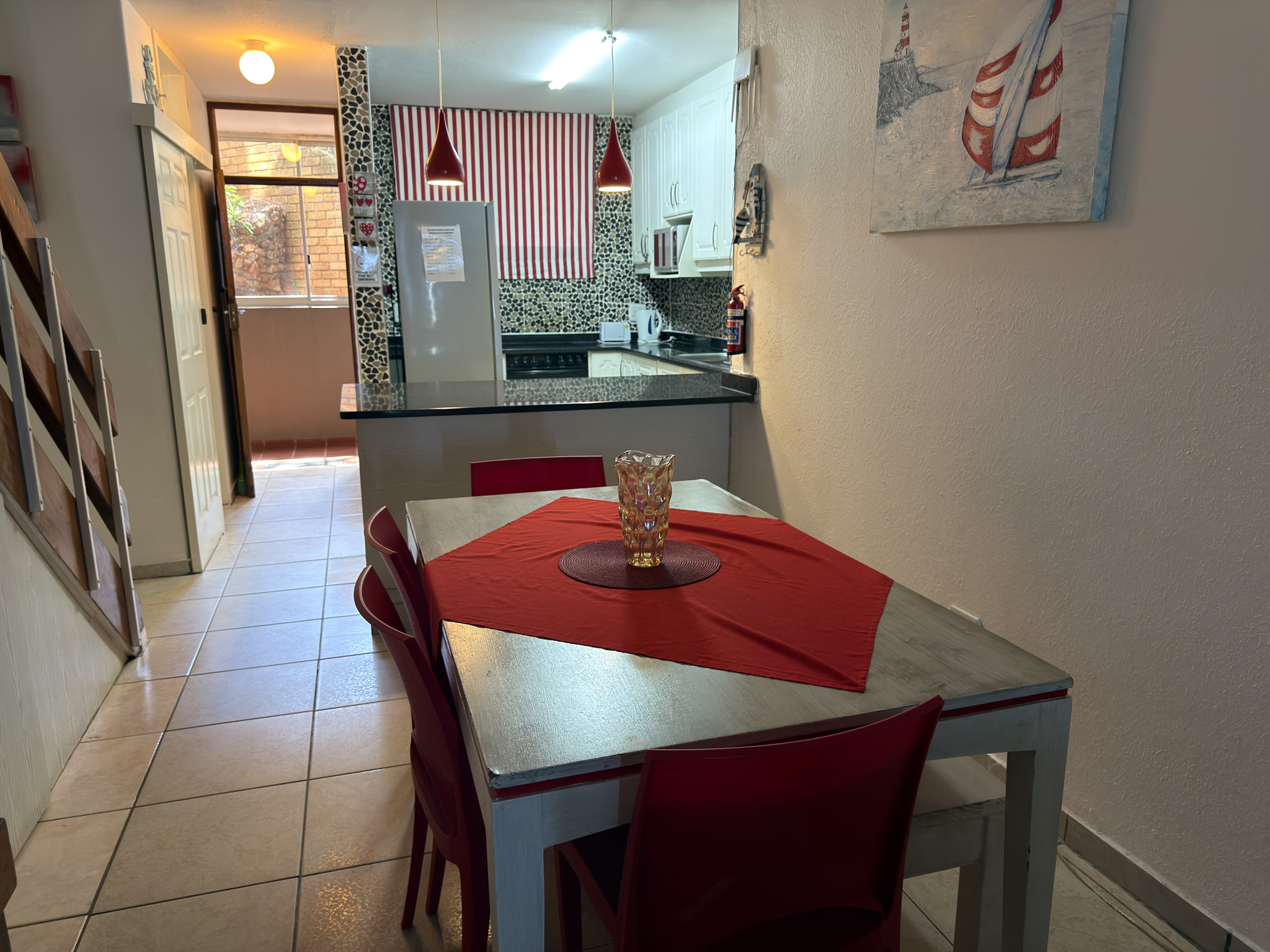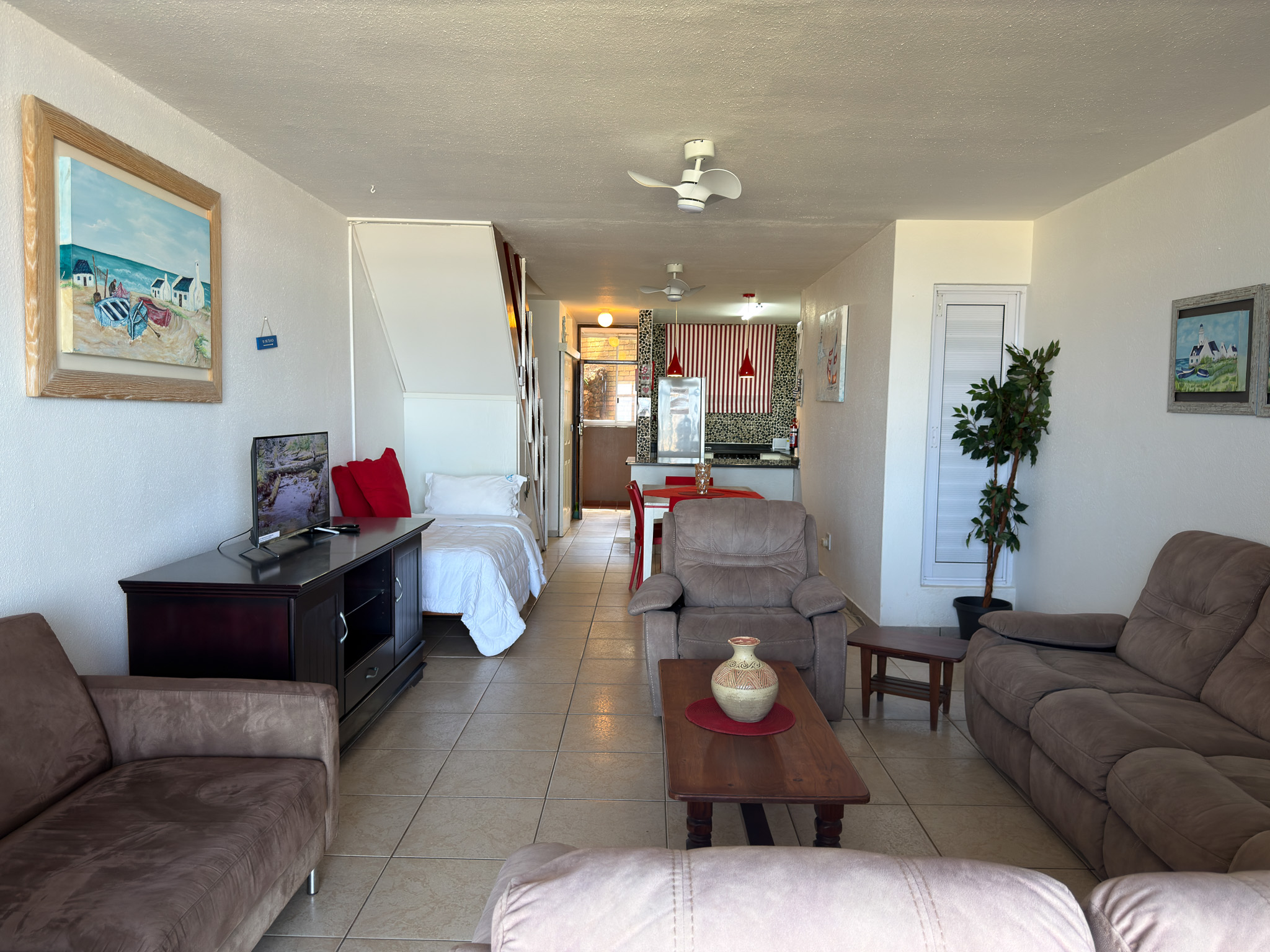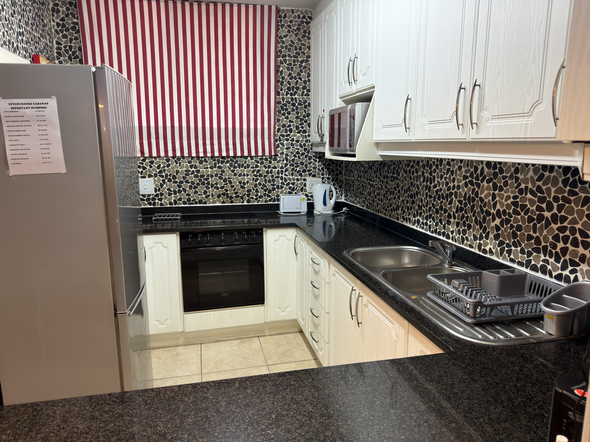Individually owned and uniquely decorated 2-bedroom sea-facing apartment on the ground floor at Inyoni Rocks Cabanas. Sleeps up to 6 guests. Features a fully equipped kitchen, DSTV & WiFi, private balcony, and en-suite main bedroom. All linen included.