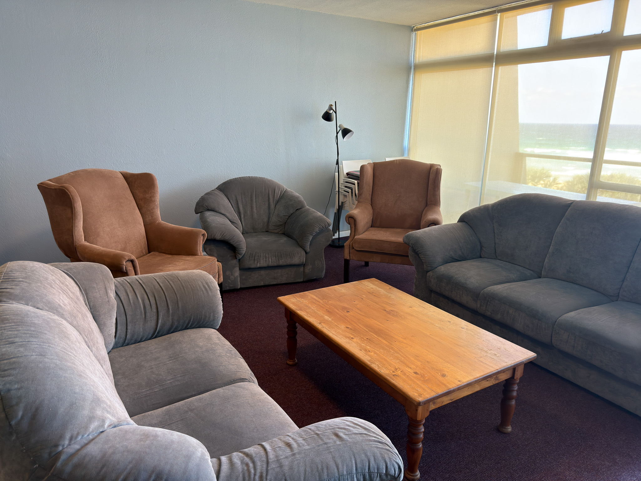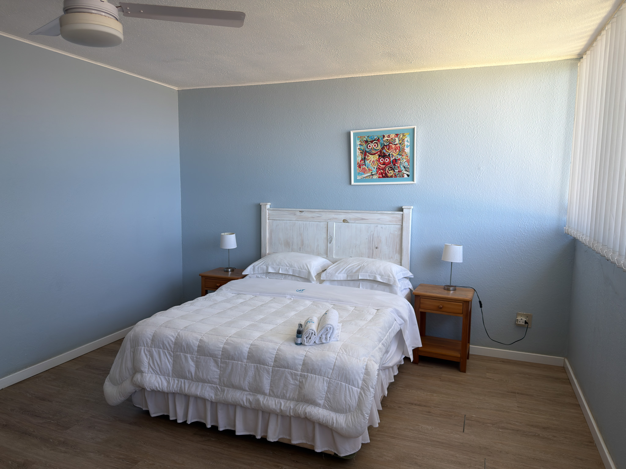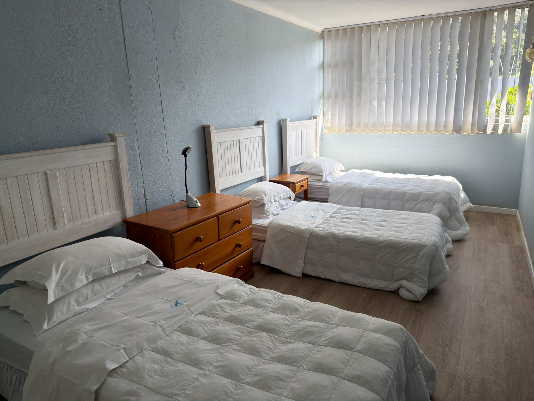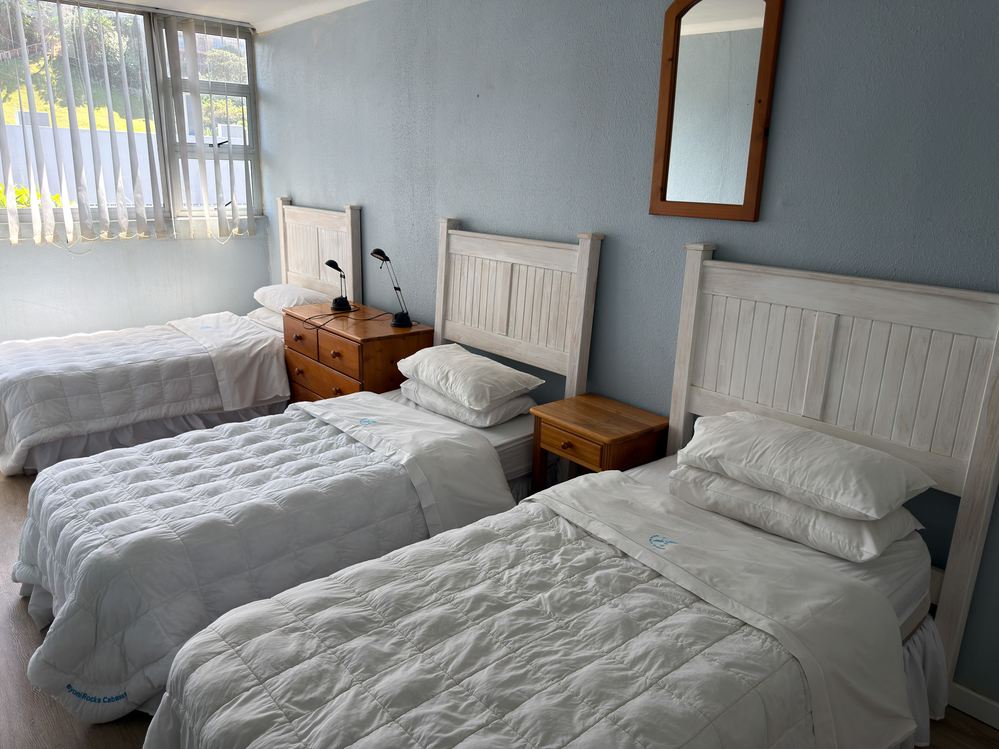 Individually owned and uniquely decorated 3-bedroom sea-facing apartment on the 1st floor at Inyoni Rocks Cabanas. Sleeps up to 8 guests. Features a fully equipped kitchen, DSTV & WiFi, private balcony, and en-suite main bedroom. All linen included.