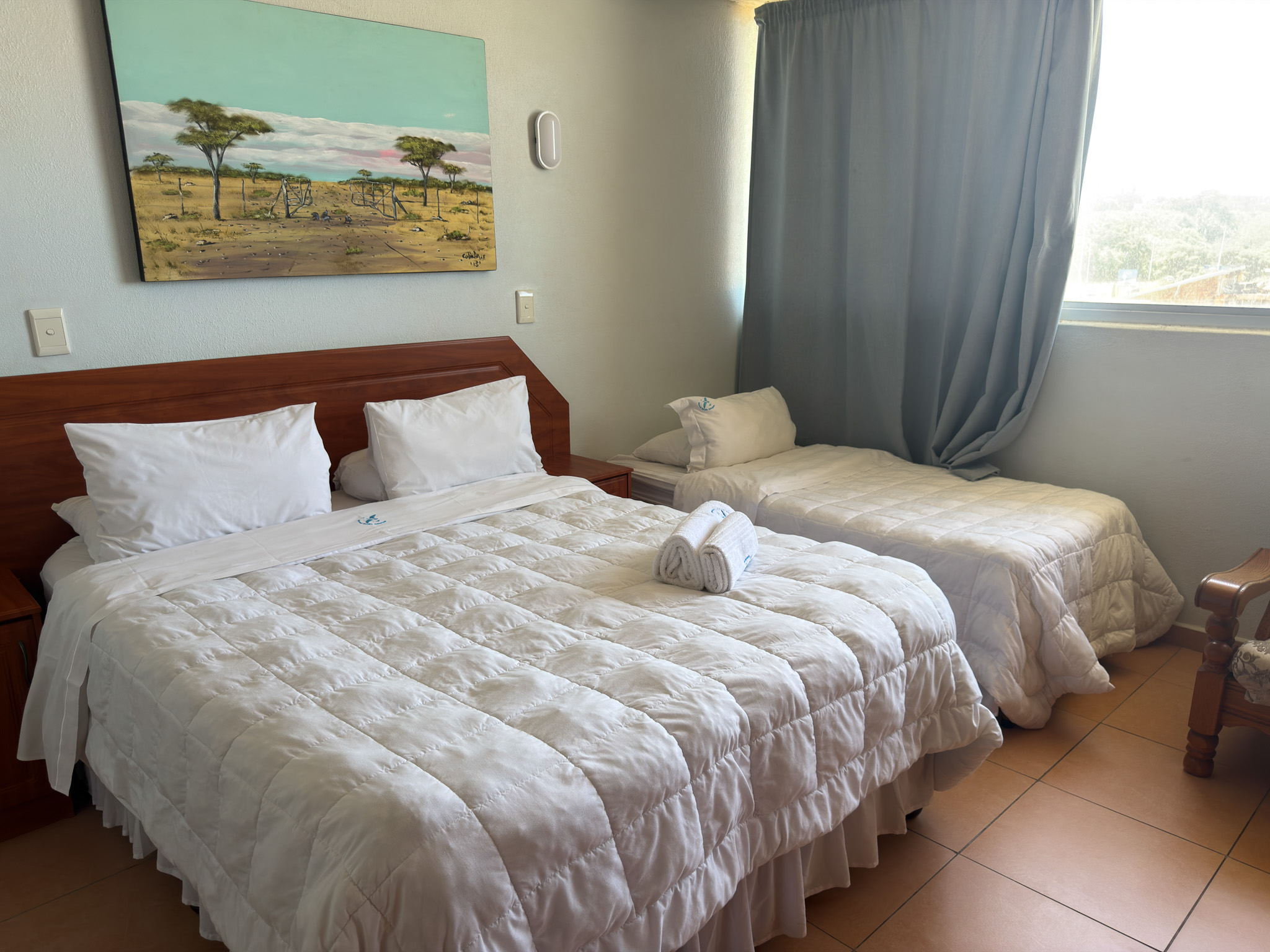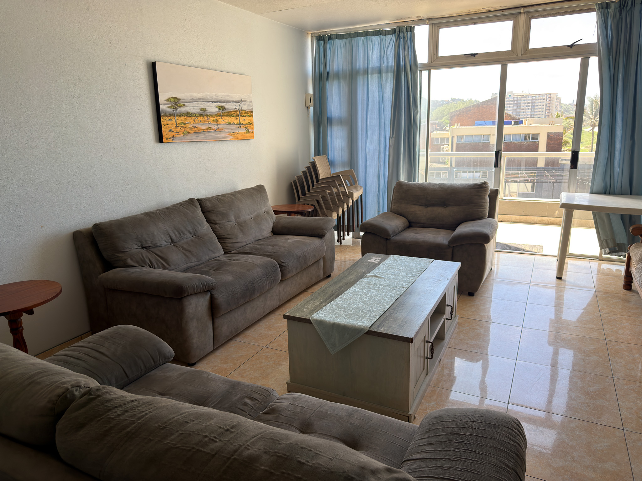 Individually owned and uniquely decorated 2-bedroom north-facing apartment on the 1st floor at Inyoni Rocks Cabanas. Sleeps up to 6 guests. Features a fully equipped kitchen, DSTV & WiFi, private balcony, and en-suite main bedroom. All linen included.